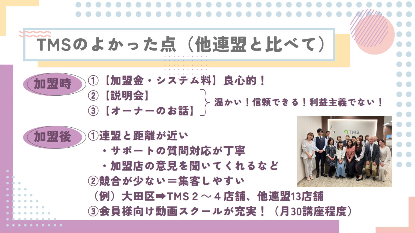 TMSを選んだ理由・加盟してよかった点