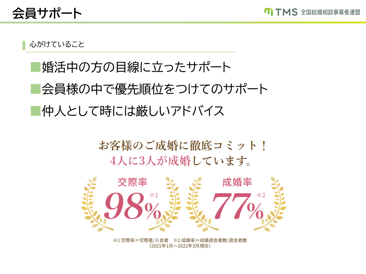 このような手厚いサポートにより、会員の交際率や成婚率が高い結果につながっています。