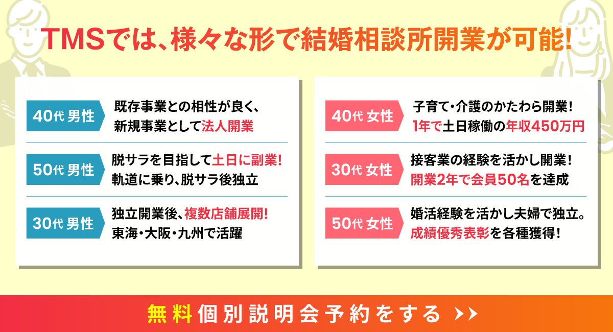 副業として結婚相談所開業を目指している方は是非ご覧ください。